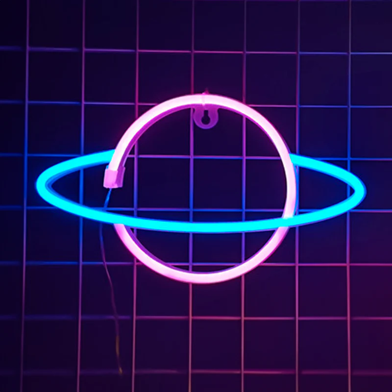 Planet Neon LED Lampe Pink Blå