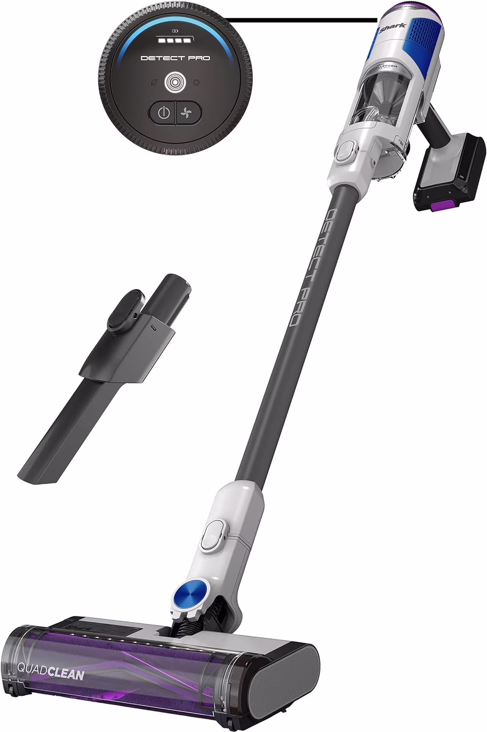 Restored Shark R-IW1615QBL Detect Pro Cordless HEPA QuadClean Multi-Surface Stick Vacuum, Dark Grey/Blue - Refurbished