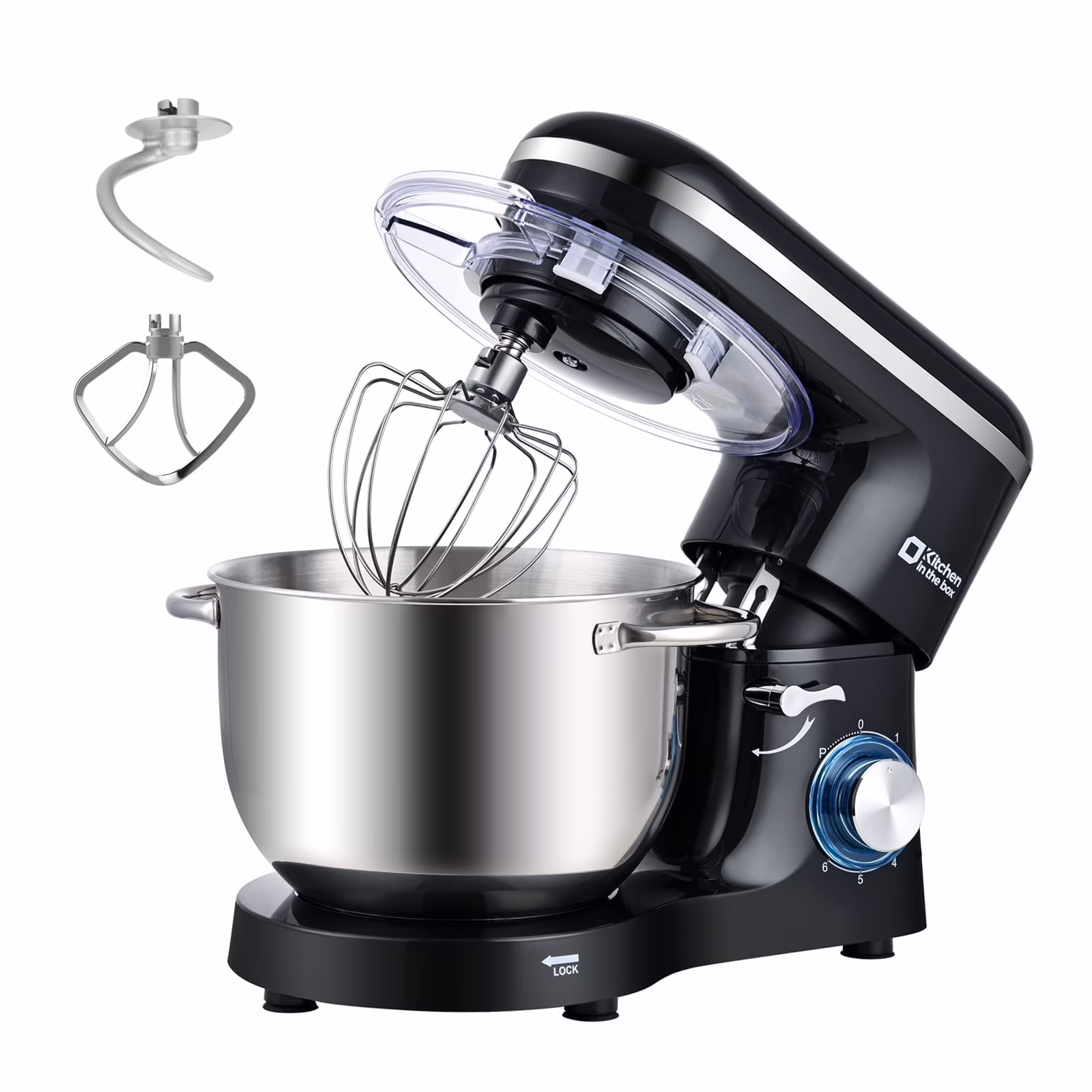 Kitchen in the box Tilt-Head Stand Mixer, Electric Kitchen Mixer with 6.5QT Stainless Steel Bowl, 660W Food Mixer with 6-Speed, Black