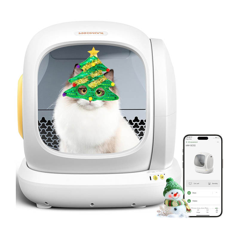 MeoWant Self-Cleaning Cat Litter Box, Integrated Safety Protection Automatic Cat Litter Box for Multi Cats, Extra Large/Odor Removal/APP Control Smart Cat Litter Box with Mat & Liner