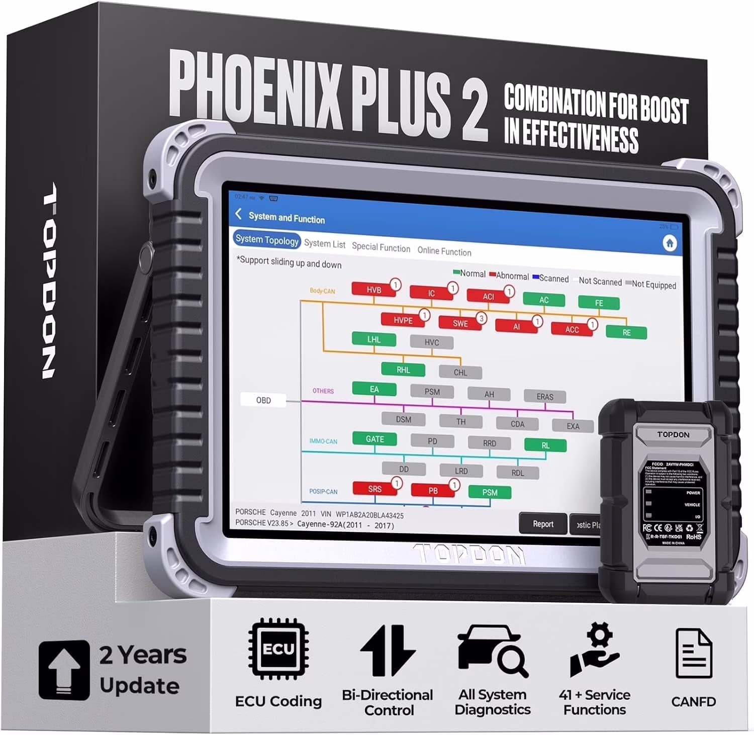 TOPDON Phoenix Plus 2 Scanner, 10.1"Bidirectional Scan Tool,ECU Coding,41+ Service,OEM Full System,2Y Free Update