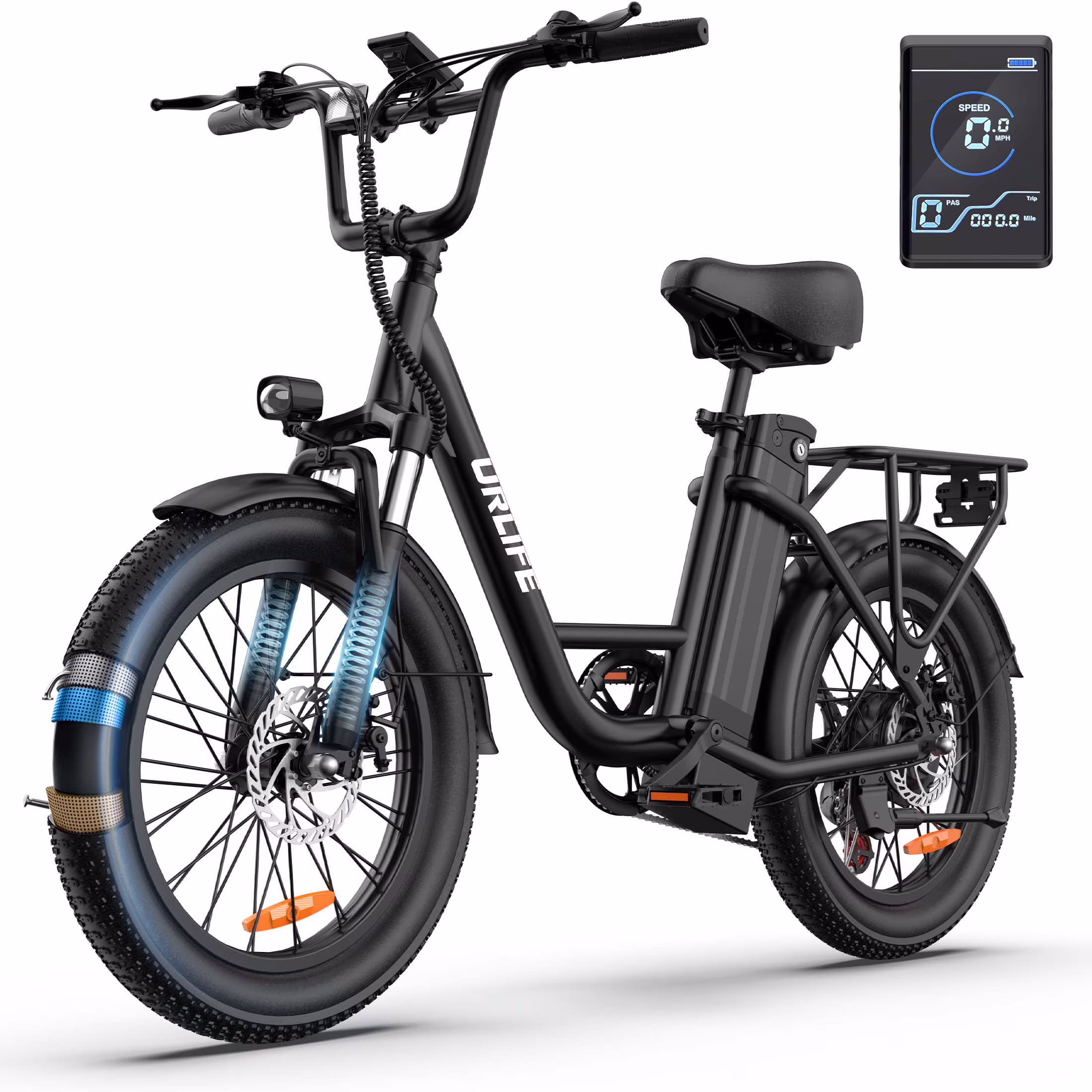 URLIFE 20" Electric Bike for Adults, 1000W Peak Motor, 48V 13AH Remobavle Battery, 7-Speed Mountain Ebike, UL2849-Black