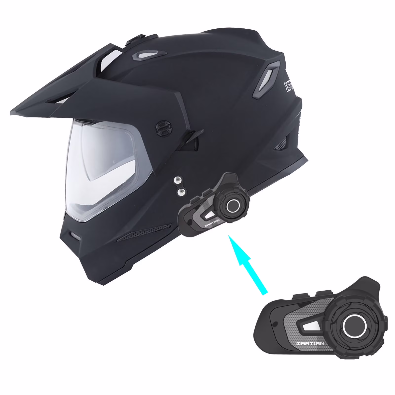 1Storm Youth Kids Dual Sport Dual Visor Motorcycle Motocross Off Road Full Face Helmet: HF802Youth Matt Black + Motorcycle Bluetooth Headset