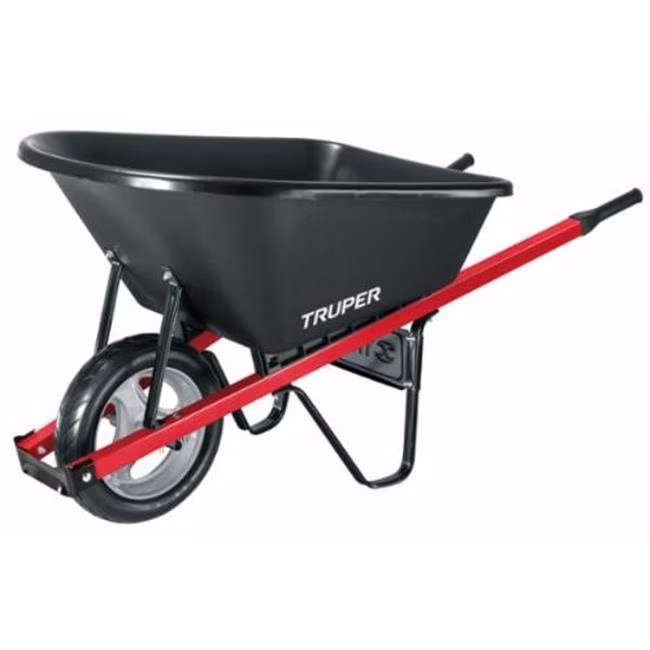 Truper TP-6FF 5.5 cu. ft. Poly Tray Flat Free Wheelbarrow Contractor, Black