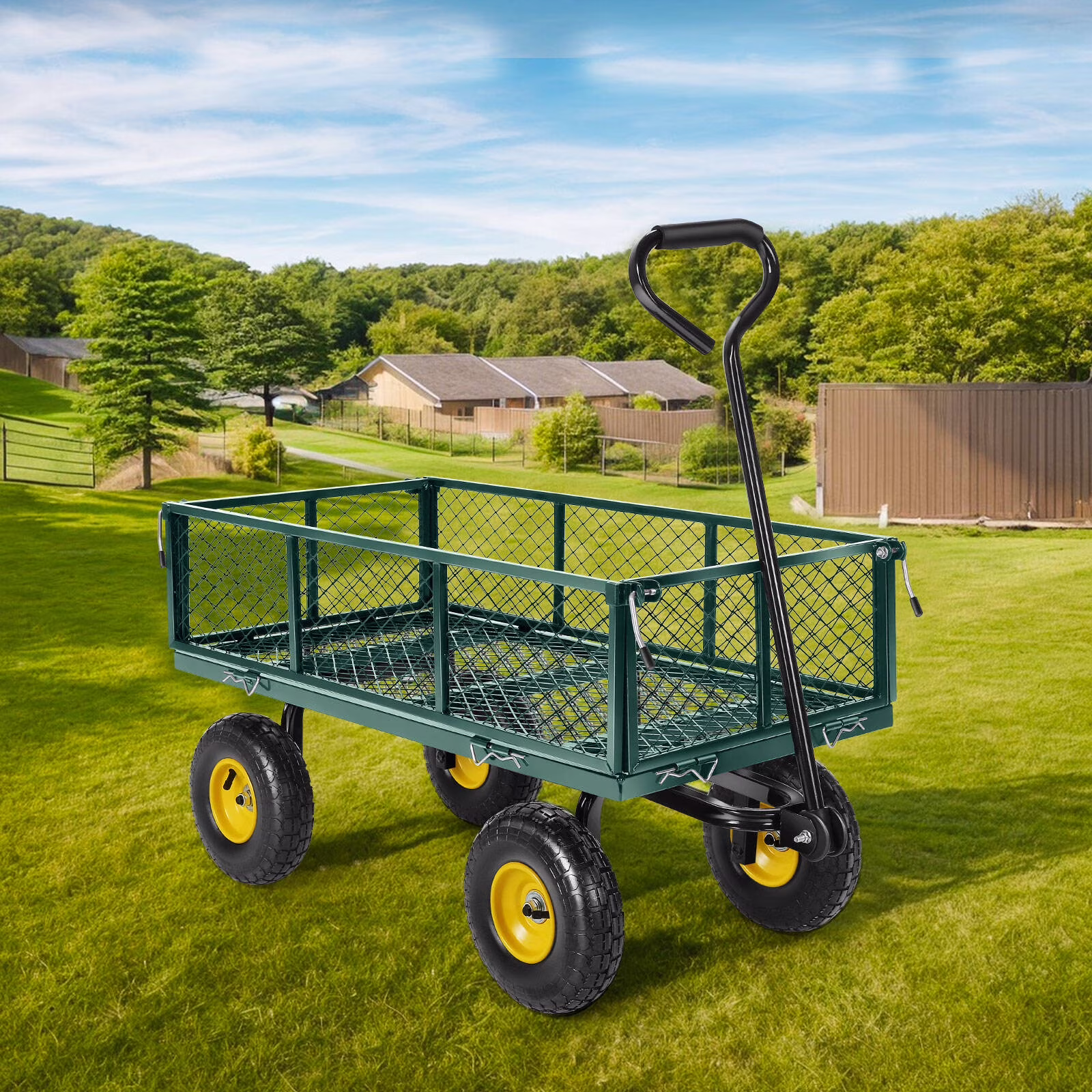 Farmdex Steel Mesh Garden Cart with 10" Tires Wagon Cart Newest Garden Utility Carts Heavy Duty 660LBS Capacity Folding Utility Wagon with Removable Sides, Garden Wagon for Yard
