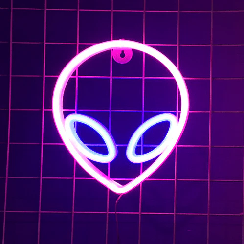 Alien Neon LED Lampe Blå Øjne
