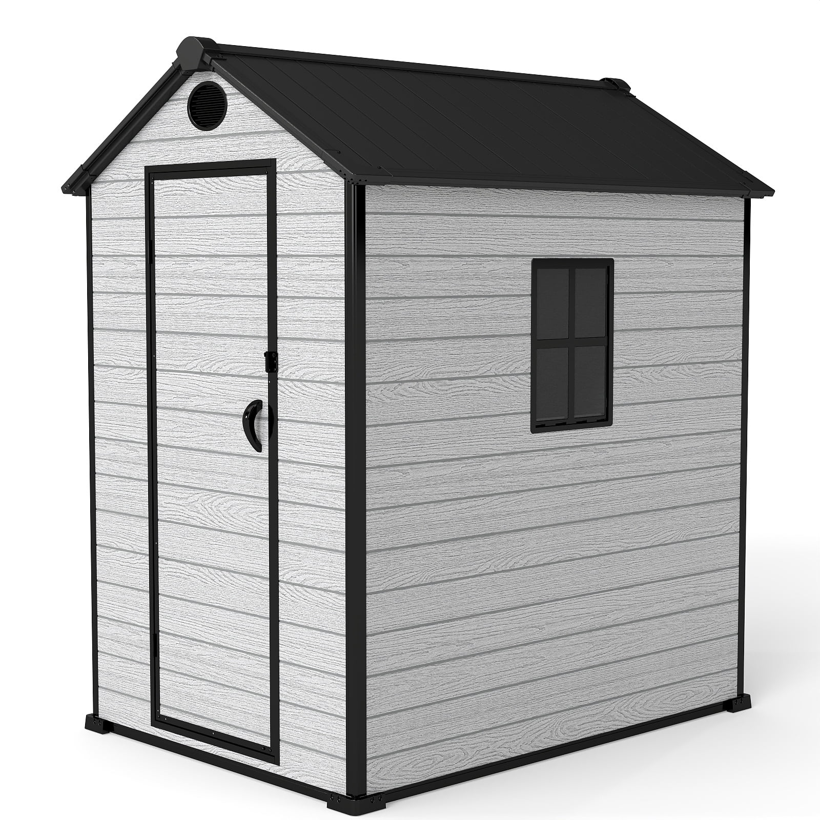 ZYJOYY 4'x 6' Resin Outdoor Garden Tool Storage Shed w/ Window, Grey