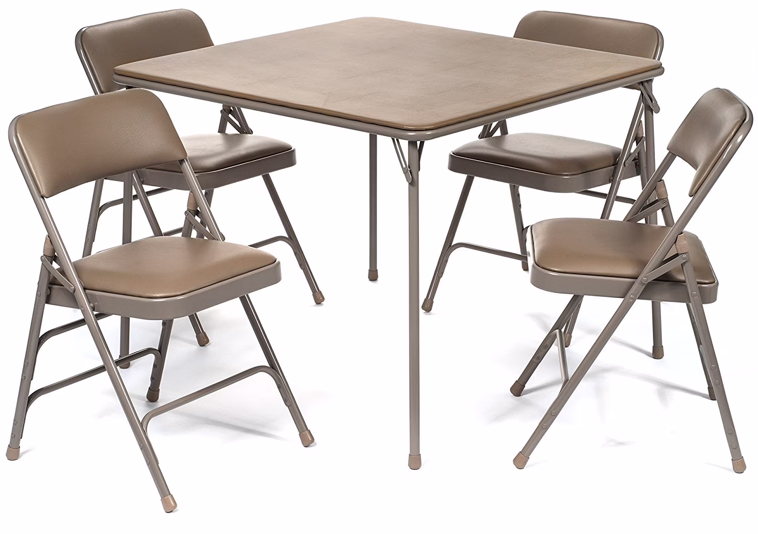 5pc. XL Series 4 Folding Card Table and Triple Braced Vinyl Padded Chair Set, Commercial Quality, Beige, 30