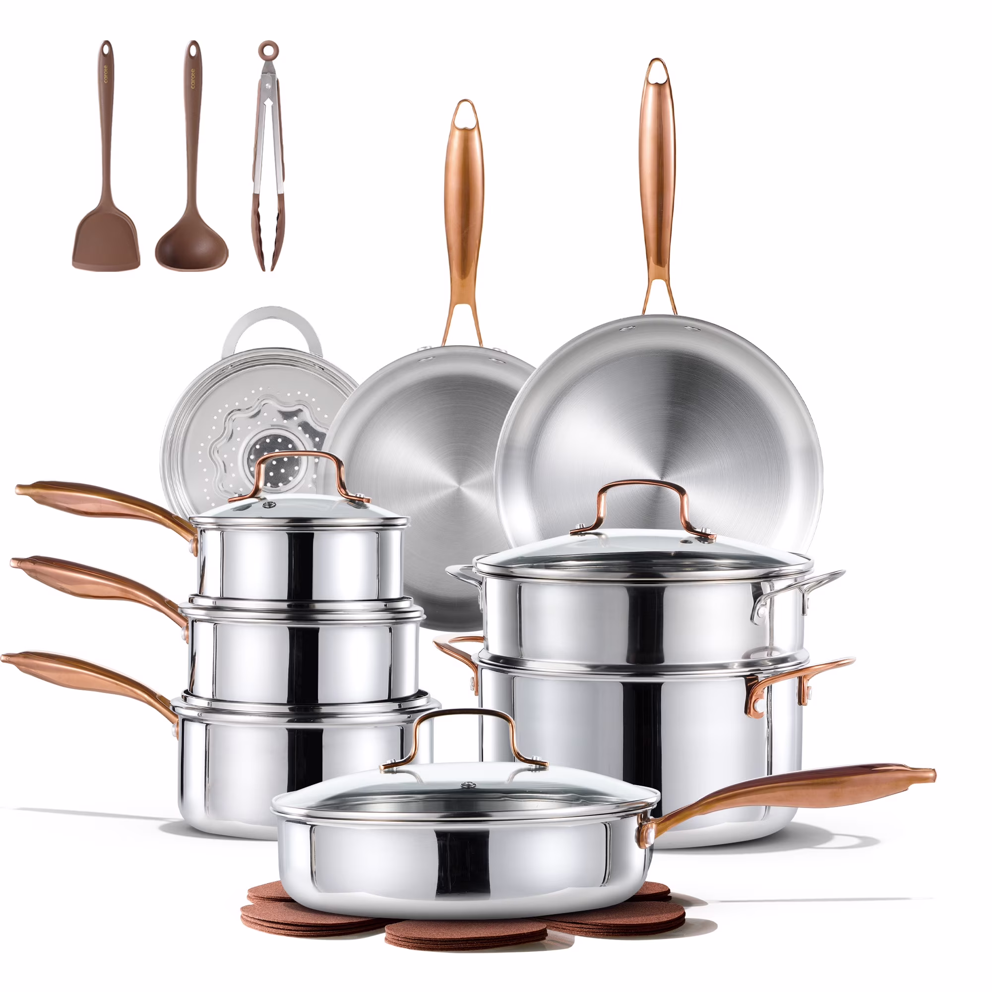 Carote 23-Piece Tri-Ply Stainless Steel Cookware Set with Lids, Nonstick Induction Compatible Pots & Pans Set, Oven Safe