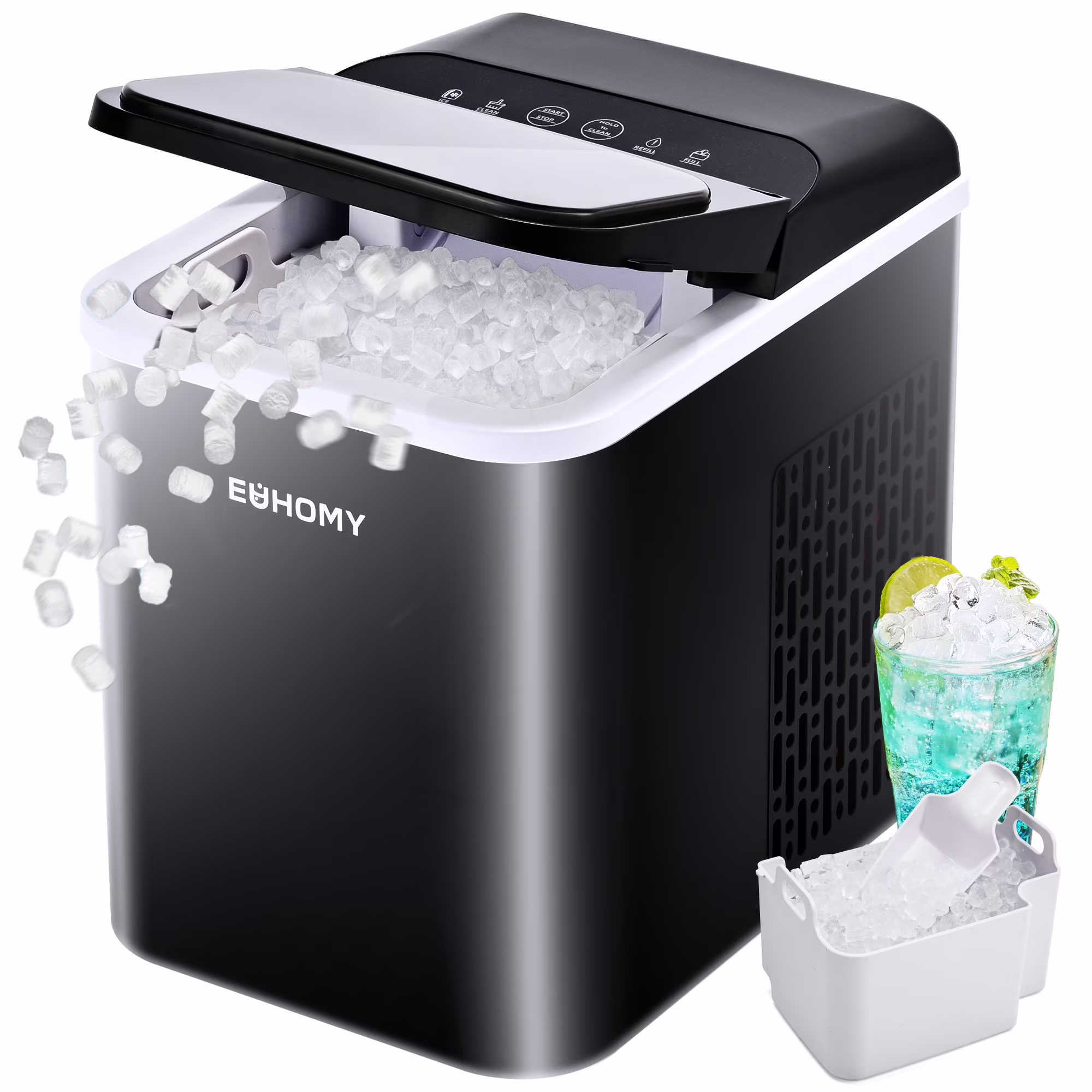 EUHOMY 35lbs/24H Nugget Ice Maker Countertop, Pebble Ice Maker Machine with Auto-Cleaning, Black