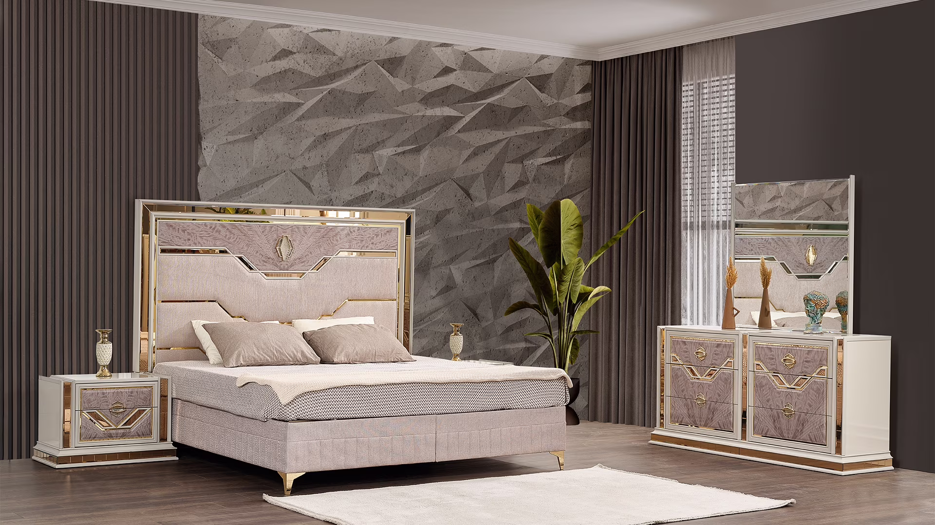Omari Traditional Style Queen 4Pc Bedroom Set made with Wood in Beige