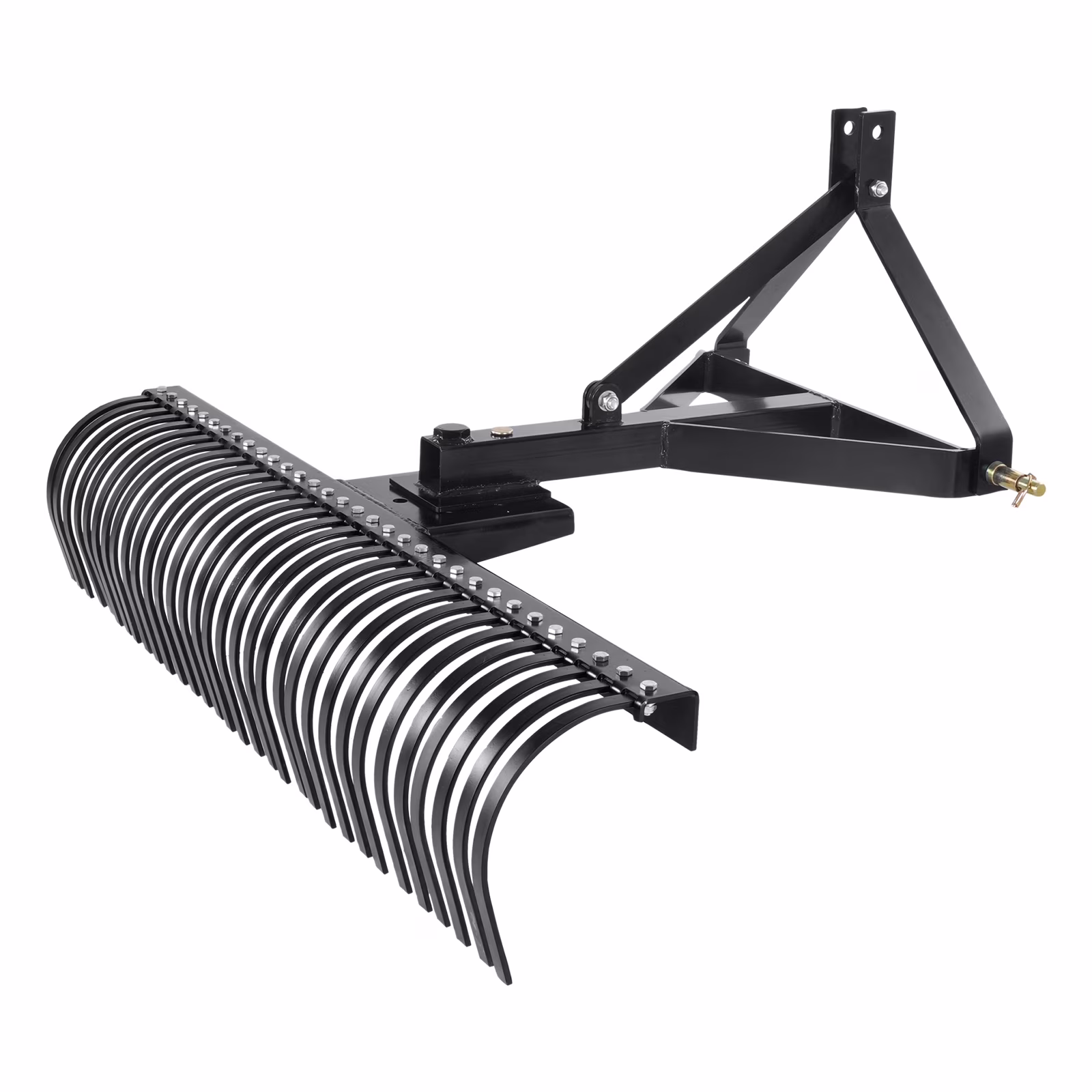 KFFKFF 3-Point Landscape Rake, 60" Pull-Behind Thatch Remover with 32 Steel Tines, Tractor-Compatible 3-Point Hitch Garden Rake with Attachments