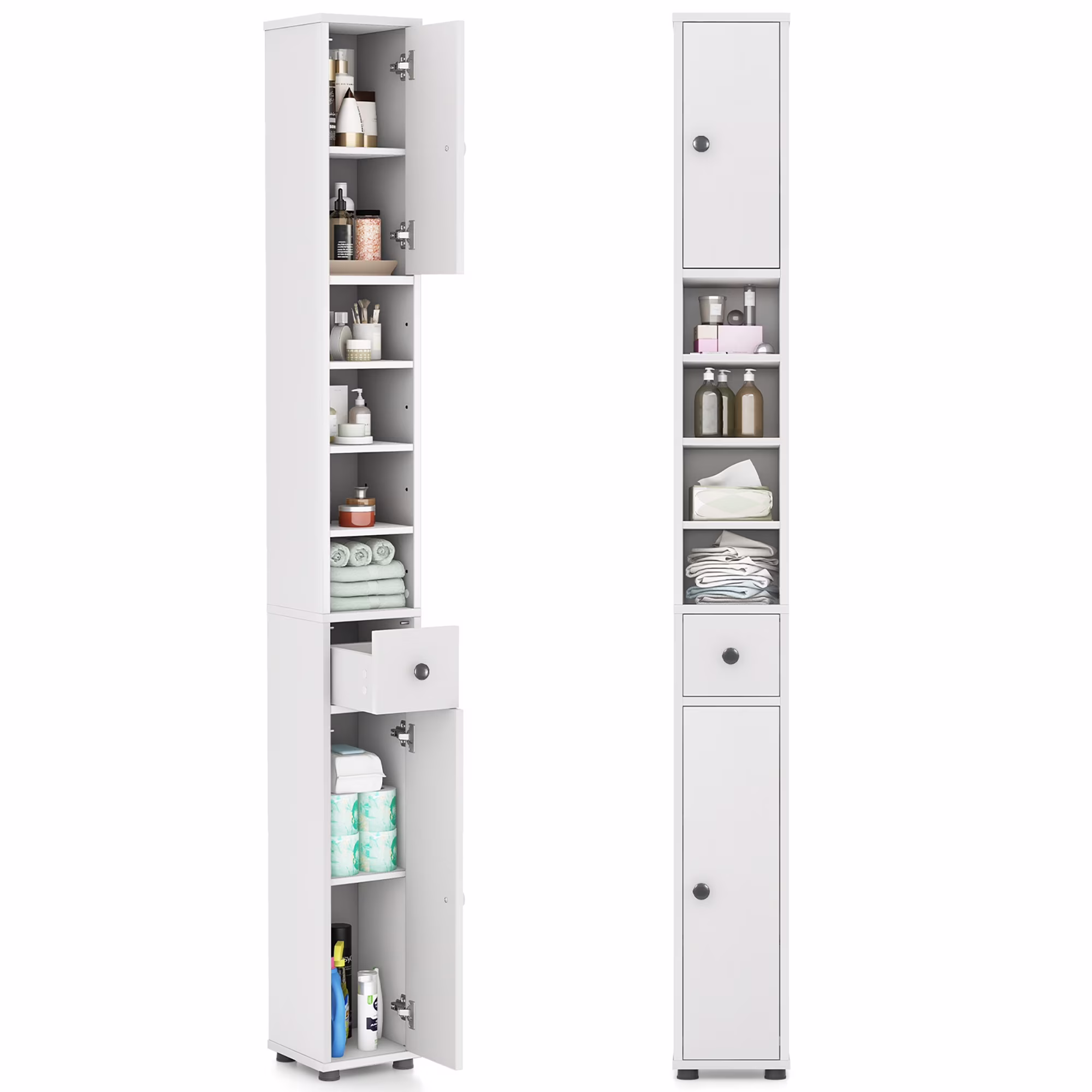 Gymax Tall Slim Bathroom Storage Cabinet Linen Tower w/ Drawer & Adjustable Shelves