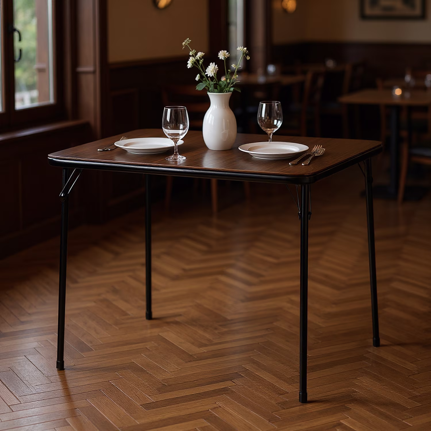 Homy Casa Hotel Lounge Folding Table, 34 Inch, Foldable and Space-Saving, Perfect for Hotel Lobbies or Waiting Areas, Brown