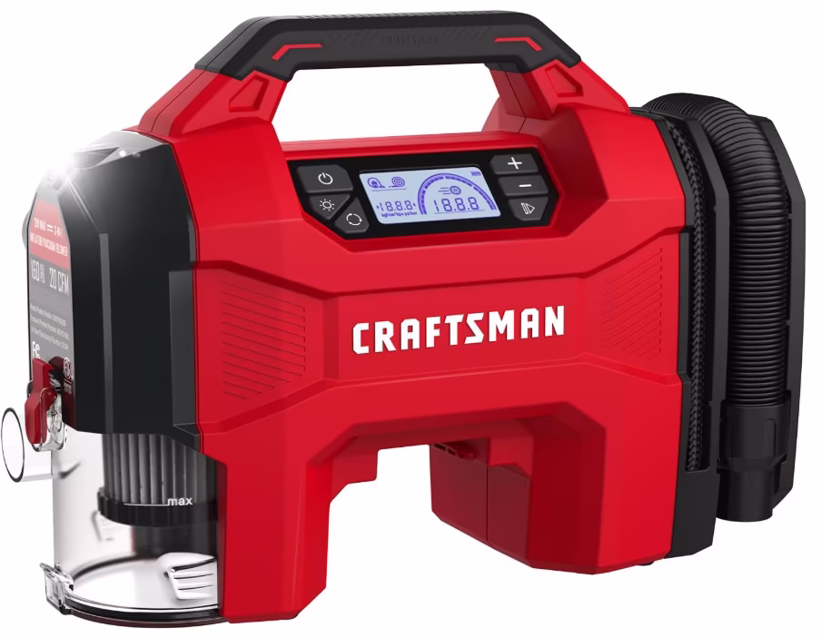 CRAFTSMAN 3-in-1 Tire Inflator, 160PSI Portable Air Compressor/Car Vacuum/Dust Blower, 20V Cordless & 12V Car Power, Air Pump with LED Light for Cars Trucks RV Tires (Battery Sold Separately)