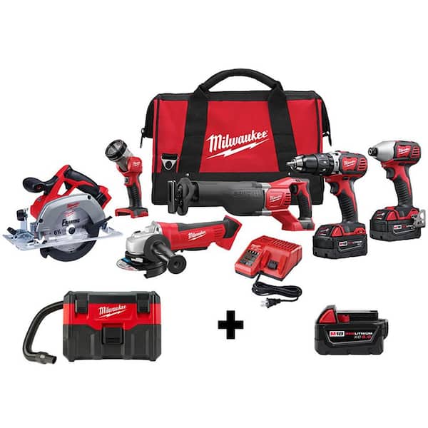 M18 18V Lithium-Ion Cordless Combo Tool Kit (6-Tool) w/ Wet/Dry Vacuum and Additional 5.0Ah Battery