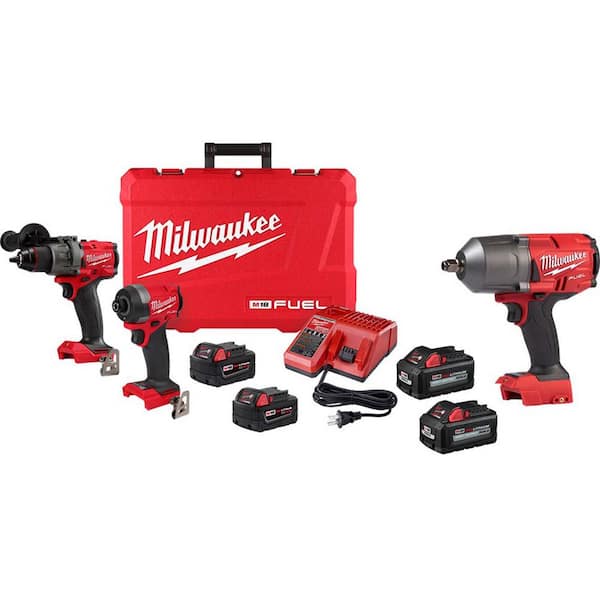 M18 FUEL 18-V Lithium-Ion Brushless Cordless Hammer Drill/Impact Combo Kit W/1/2 in .Impact Wrench Kit w/(4) Batteries