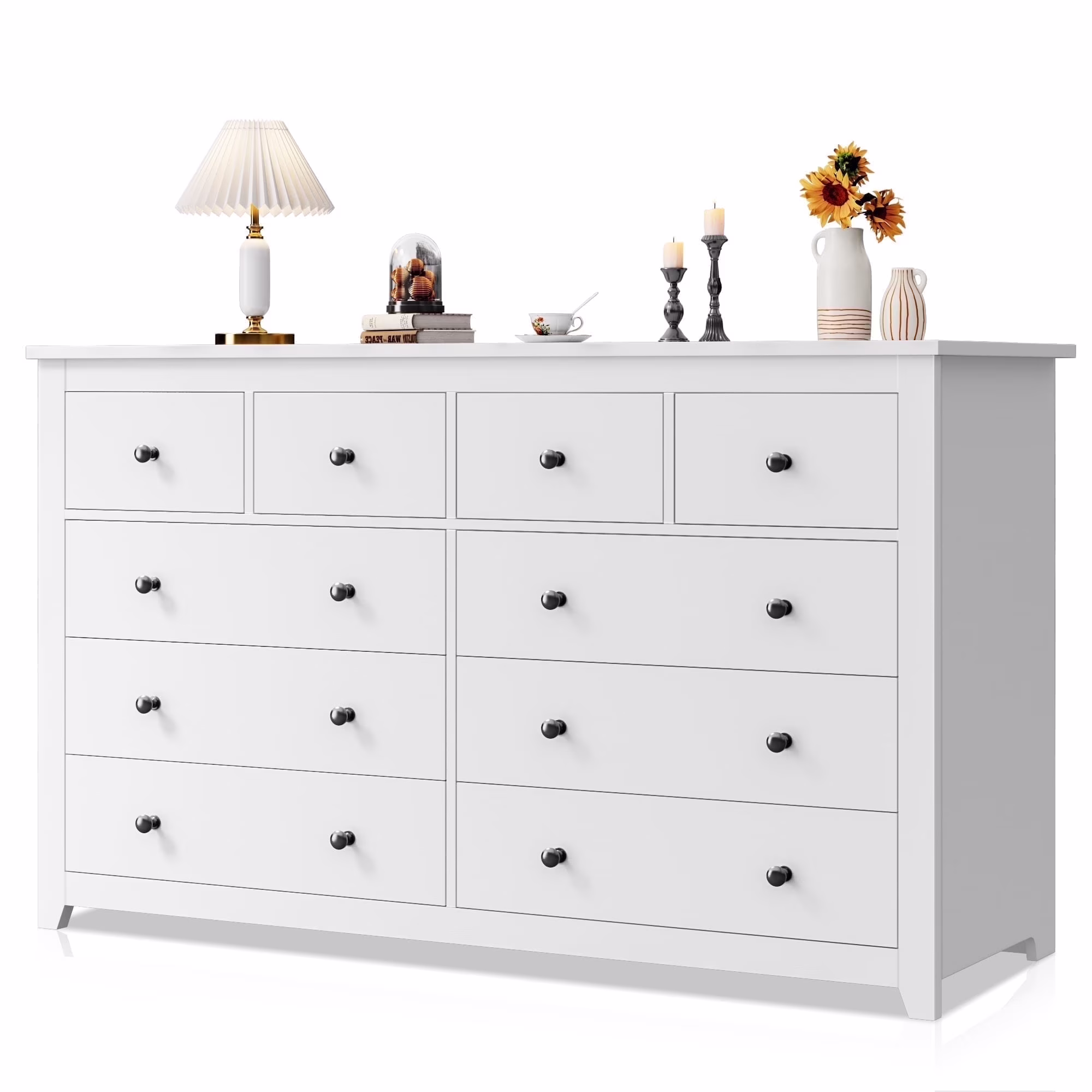 EnHomee White Dresser for Bedroom with 10 Drawers Modern Wood Dressers Chests of Drawers Wide Dresser for Adults
