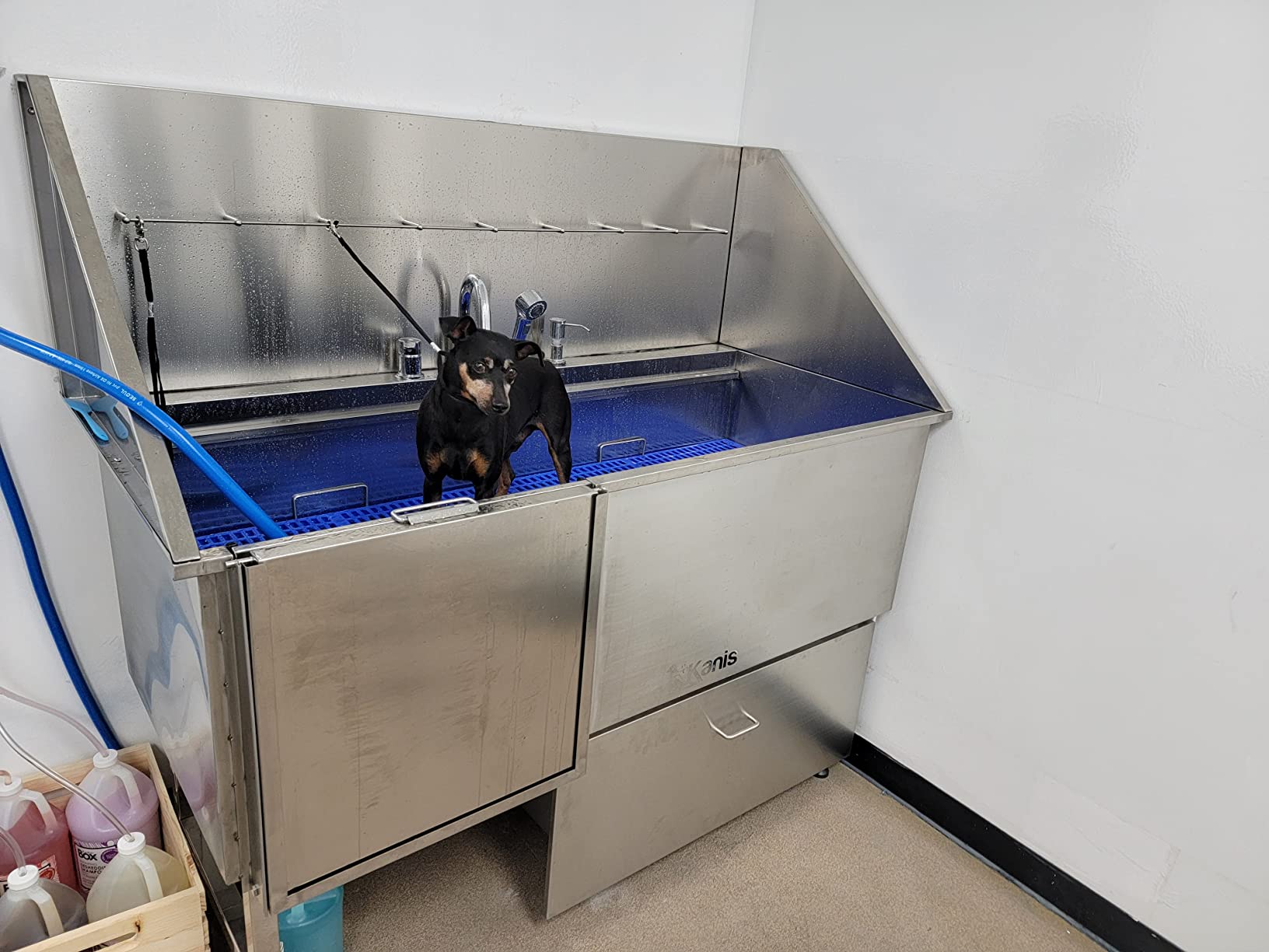 - 50" UTILITY & GROOMING STATION - KANIS Proudly introduces The most Complete and Versatile dog bathtub! Suitable for general home cleaning and pet washing, our grooming sink is a must-have in a multi-functional utility room, laundry, or garage. Superior Quality, Durable & Rust-resistant 304 Stainless Steel, No Leak Fully Welded Construction and Easy to install.